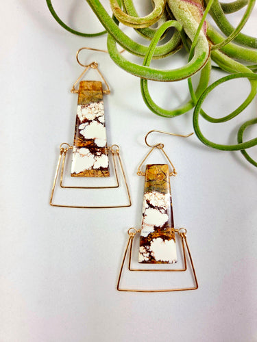 Wild Horse Jasper Gemstones Gold Double framed Earrings - ShayD Design
